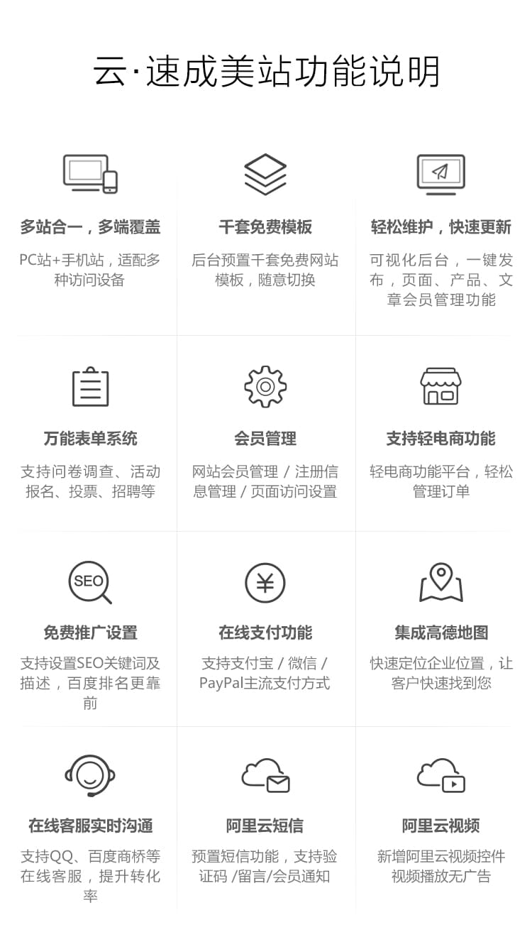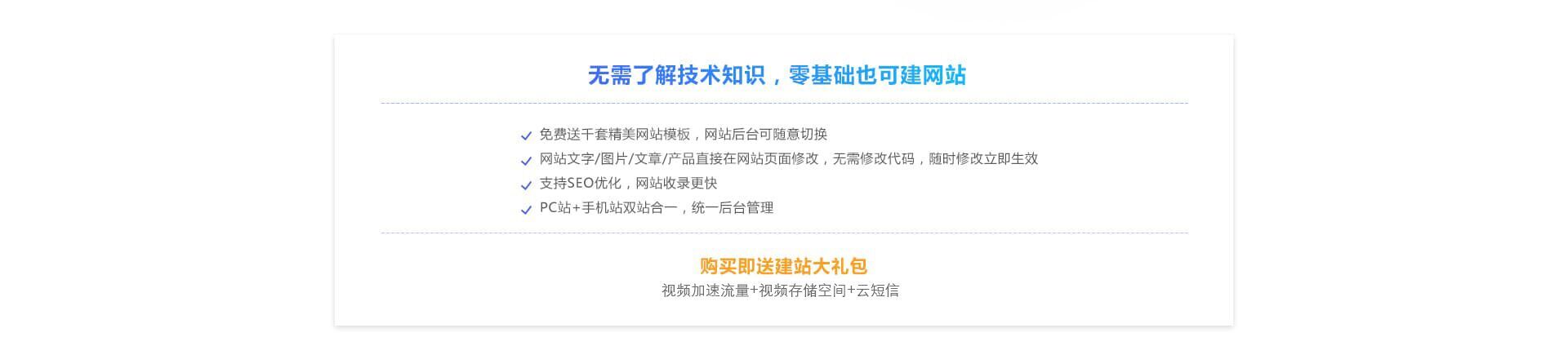 | 增值服務費:短信增值費:每1000條70元。空間增值費:每增加10G收費100元/年。視頻點播流量費購買套餐可低至:0.2元/G。 | 如需開通請致電 010-88182873 |